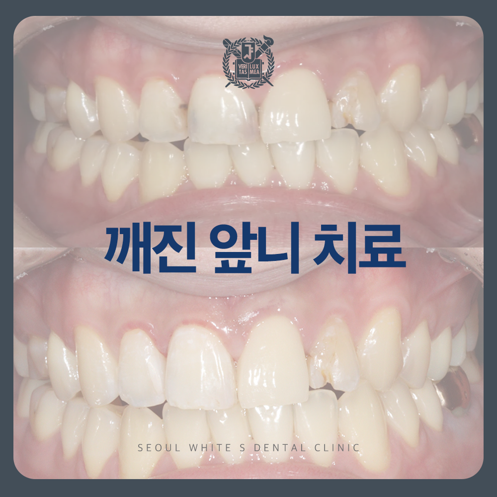 영도구치과추천 서울화이트S치과는 위 앞니 사이 인접면 우식과 깨진 치아로 일상생활에 불편함을 느끼고 계신 분의 심미치료 사례를 소개해 드리겠습니다.